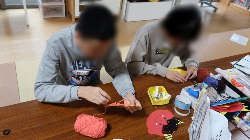 毛糸でおにの頭をもじゃもじゃに🧶